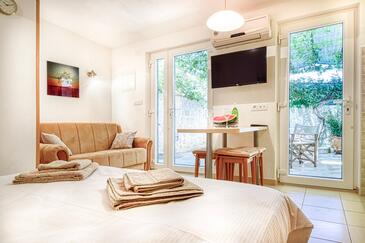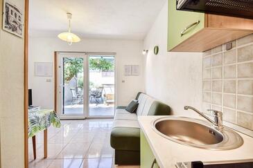Appartamento può accogliere 3 ospiti. I letti sono disposti nelle camere da letto che sono 1, e nella camera di soggiorno, su 23m2. Gli ospiti hanno a disposizione il proprio terrazzo per godere nelle calde serate estive. Dall'appartamento si gode di una vista sul mare.