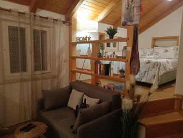 Casa può accogliere 5 ospiti. I letti sono disposti nelle camere da letto che sono 1, e nella camera di soggiorno, su 44m2. Gli ospiti hanno a disposizione il proprio terrazzo per godere nelle calde serate estive. Dalla casa si gode di una vista sul mare. Per il piacere totale e il relax c'è il barbecue privato solo per gli ospiti di quest'alloggio. Nell'unità di alloggio si possono portare gli animali domestici senza alcun pagamento supplementare.