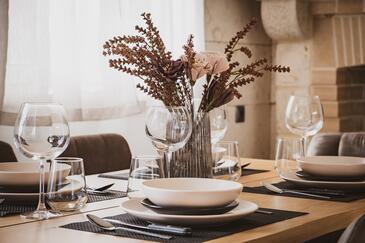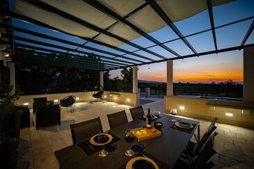 Casa può accogliere 5 ospiti. I letti sono disposti nelle camere da letto che sono 2, e nella camera di soggiorno, su 60m2. Gli ospiti hanno a disposizione il proprio terrazzo per godere nelle calde serate estive. Per il piacere totale e il relax c'è il barbecue privato solo per gli ospiti di quest'alloggio. Durante il soggiorno gli ospiti si possono rilassare nella piscina privata. Nell'unità di alloggio si possono portare gli animali domestici con un pagamento supplementare.