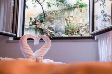 Appartamento può accogliere 5 ospiti. I letti sono disposti nelle camere da letto che sono 2, e nella camera di soggiorno, su 58m2. Gli ospiti hanno a disposizione il proprio terrazzo per godere nelle calde serate estive. Dall'appartamento si gode di una vista sul mare. Si può preparare il cibo utilizzando il barbecue comune.