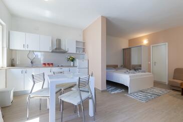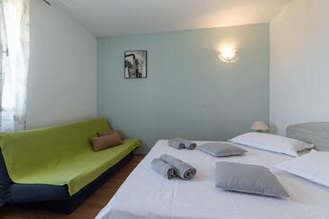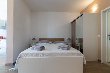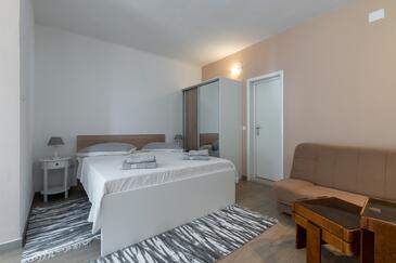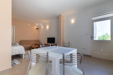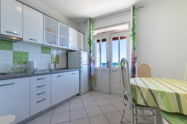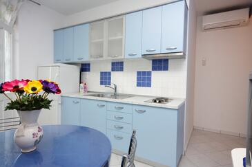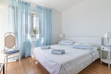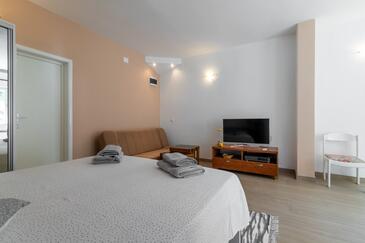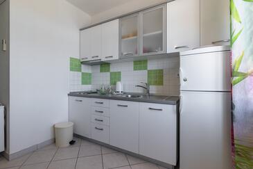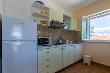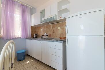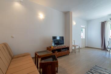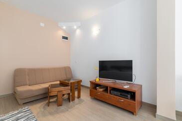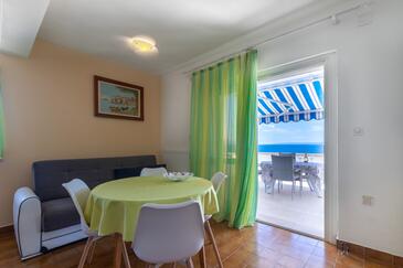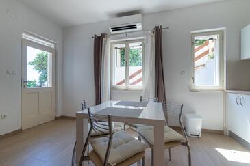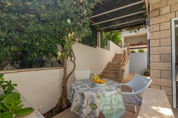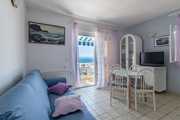 Appartamento può accogliere 5 ospiti. I letti sono disposti nelle camere da letto che sono 2, e nella camera di soggiorno, su 40m2. Gli ospiti hanno a disposizione il proprio terrazzo per godere nelle calde serate estive. Dall'appartamento si gode di una vista sul mare. Si può preparare il cibo utilizzando il barbecue comune.