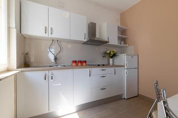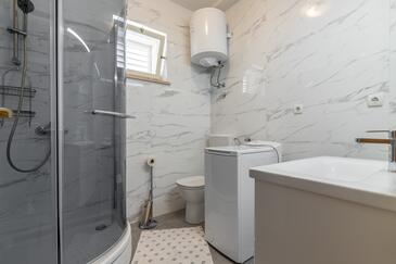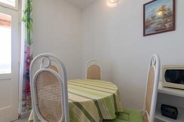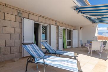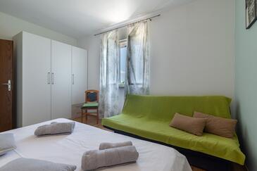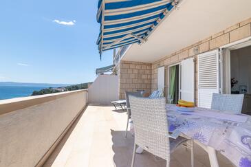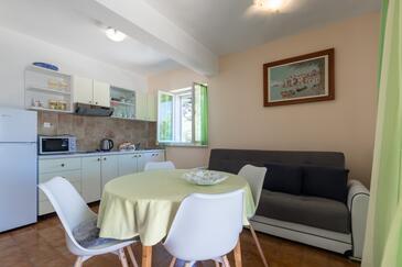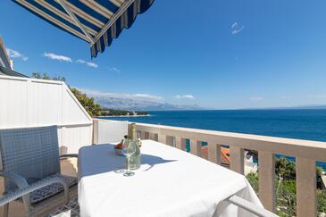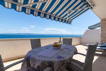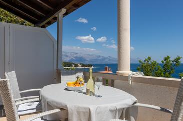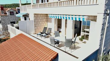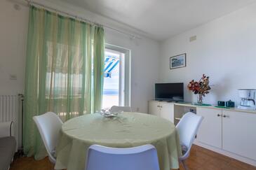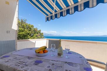 Appartamento può accogliere 5 ospiti. I letti sono disposti nelle camere da letto che sono 2, e nella camera di soggiorno, su 40m2. Gli ospiti hanno a disposizione il proprio terrazzo per godere nelle calde serate estive. Dall'appartamento si gode di una vista sul mare. Si può preparare il cibo utilizzando il barbecue comune.