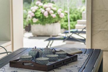 Casa può accogliere 7 ospiti. I letti sono disposti nelle camere da letto che sono 3, e nella camera di soggiorno, su 92m2. Gli ospiti hanno a disposizione il proprio terrazzo per godere nelle calde serate estive. Dalla casa si gode di una vista sul mare. Per il piacere totale e il relax c'è il barbecue privato solo per gli ospiti di quest'alloggio. Arrivati nell'unità d'alloggio i clienti devono pagare un deposito (il prezzo è indicato sul sito).
