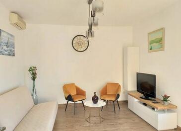 Appartamento può accogliere 8 ospiti. I letti sono disposti nelle camere da letto che sono 3, e nella camera di soggiorno, su 95m2. Gli ospiti hanno a disposizione il proprio terrazzo per godere nelle calde serate estive. Dall'appartamento si gode di una vista sul mare. Si può preparare il cibo utilizzando il barbecue comune. Durante il soggiorno gli ospiti possono utilizzare la piscina comune. Nell'unità di alloggio si possono portare gli animali domestici con un pagamento supplementare.