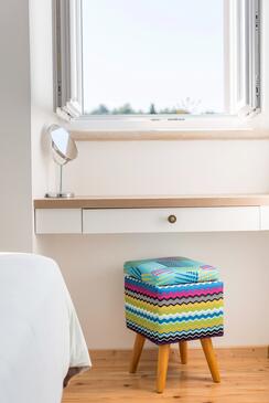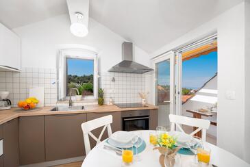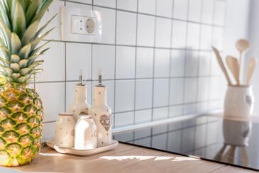 Casa può accogliere 6 ospiti. I letti sono disposti nelle camere da letto che sono 3, su 84m2. Gli ospiti hanno a disposizione il proprio balcone per godere delle calde serate estive. Dalla casa si gode di una vista sul mare. Per il piacere totale e il relax c'è il barbecue privato solo per gli ospiti di quest'alloggio. Durante il soggiorno gli ospiti si possono rilassare nella piscina privata. Le stanze dell'unità d'alloggio non sono connesse in un insieme.