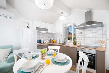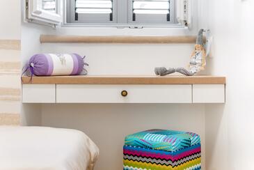 Casa può accogliere 6 ospiti. I letti sono disposti nelle camere da letto che sono 3, su 84m2. Gli ospiti hanno a disposizione il proprio balcone per godere delle calde serate estive. Dalla casa si gode di una vista sul mare. Per il piacere totale e il relax c'è il barbecue privato solo per gli ospiti di quest'alloggio. Durante il soggiorno gli ospiti si possono rilassare nella piscina privata. Le stanze dell'unità d'alloggio non sono connesse in un insieme.