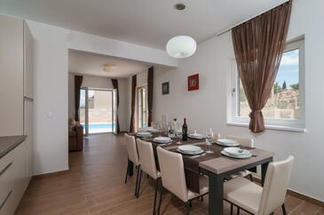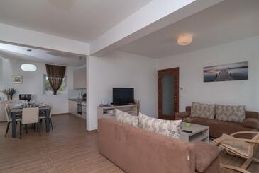 Casa può accogliere 8 ospiti. I letti sono disposti nelle camere da letto che sono 3, e nella camera di soggiorno, su 115m2. Gli ospiti hanno a disposizione il proprio terrazzo per godere nelle calde serate estive. Dalla casa si gode di una vista sul mare. Per il piacere totale e il relax c'è il barbecue privato solo per gli ospiti di quest'alloggio. Durante il soggiorno gli ospiti si possono rilassare nella piscina privata.