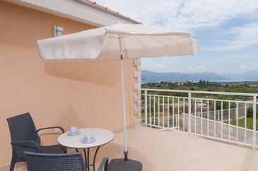 Casa può accogliere 8 ospiti. I letti sono disposti nelle camere da letto che sono 3, e nella camera di soggiorno, su 115m2. Gli ospiti hanno a disposizione il proprio terrazzo per godere nelle calde serate estive. Dalla casa si gode di una vista sul mare. Per il piacere totale e il relax c'è il barbecue privato solo per gli ospiti di quest'alloggio. Durante il soggiorno gli ospiti si possono rilassare nella piscina privata.