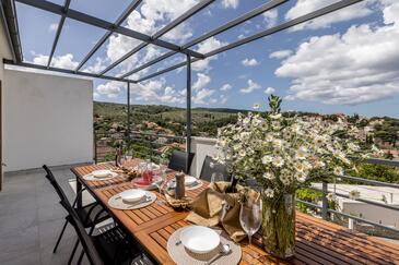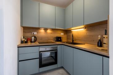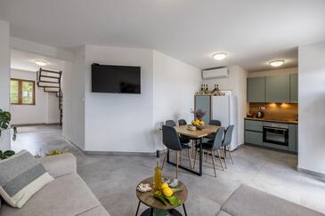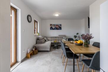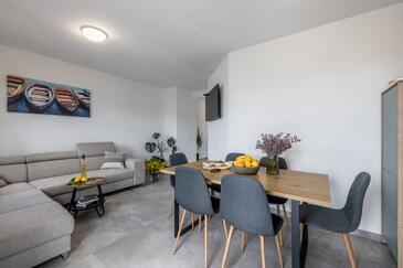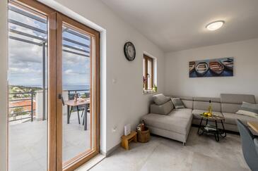 Appartamento può accogliere 6 ospiti. I letti sono disposti nelle camere da letto che sono 3, su 105m2. Gli ospiti hanno a disposizione il proprio terrazzo per godere nelle calde serate estive. Dall'appartamento si gode di una vista sul mare. Si può preparare il cibo utilizzando il barbecue comune.