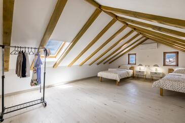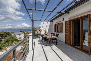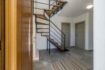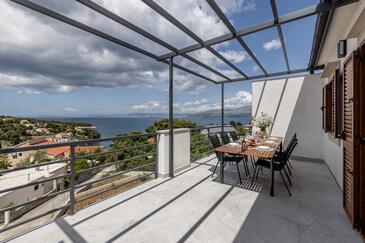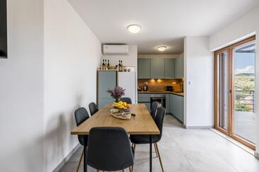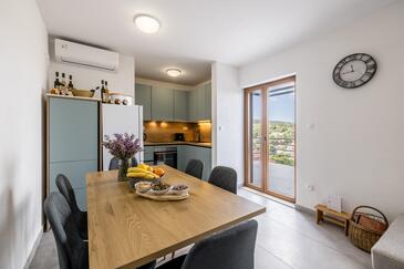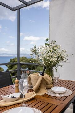 Appartamento può accogliere 6 ospiti. I letti sono disposti nelle camere da letto che sono 3, su 105m2. Gli ospiti hanno a disposizione il proprio terrazzo per godere nelle calde serate estive. Dall'appartamento si gode di una vista sul mare. Si può preparare il cibo utilizzando il barbecue comune.