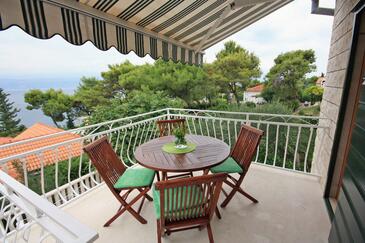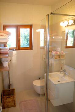 Casa può accogliere 7 ospiti. I letti sono disposti nelle camere da letto che sono 3, e nella camera di soggiorno, su 86m2. Gli ospiti hanno a disposizione il proprio terrazzo per godere nelle calde serate estive. Dalla casa si gode di una vista sul mare. Per il piacere totale e il relax c'è il barbecue privato solo per gli ospiti di quest'alloggio. Nell'unità di alloggio si possono portare gli animali domestici con un pagamento supplementare.