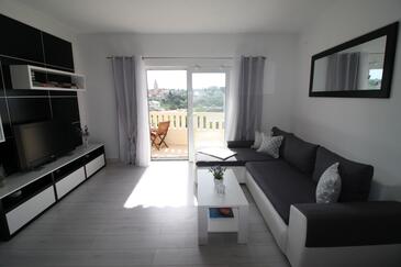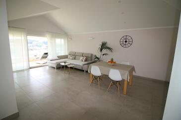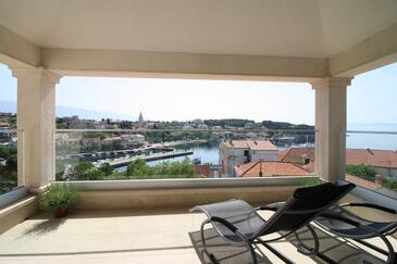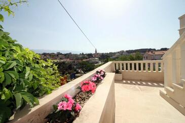 Appartamento può accogliere 6 ospiti. I letti sono disposti nelle camere da letto che sono 3, su 76m2. Gli ospiti hanno a disposizione il proprio terrazzo per godere nelle calde serate estive. Dall'appartamento si gode di una vista sul mare.