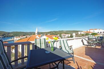 Appartamento può accogliere 6 ospiti. I letti sono disposti nelle camere da letto che sono 2, e nella camera di soggiorno, su 69m2. Gli ospiti hanno a disposizione il proprio balcone per godere delle calde serate estive. Dall'appartamento si gode di una vista sul mare. Si può preparare il cibo utilizzando il barbecue comune.