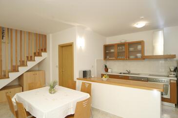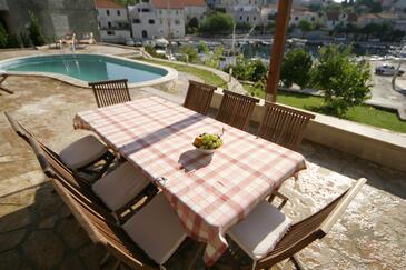 Casa può accogliere 6 ospiti. I letti sono disposti nelle camere da letto che sono 3, su 97m2. Gli ospiti hanno a disposizione il proprio terrazzo per godere nelle calde serate estive. Dalla casa si gode di una vista sul mare. Per il piacere totale e il relax c'è il barbecue privato solo per gli ospiti di quest'alloggio. Durante il soggiorno gli ospiti si possono rilassare nella piscina privata. Arrivati nell'unità d'alloggio i clienti devono pagare un deposito (il prezzo è indicato sul sito).