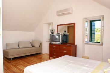Casa può accogliere 6 ospiti. I letti sono disposti nelle camere da letto che sono 3, su 97m2. Gli ospiti hanno a disposizione il proprio terrazzo per godere nelle calde serate estive. Dalla casa si gode di una vista sul mare. Per il piacere totale e il relax c'è il barbecue privato solo per gli ospiti di quest'alloggio. Durante il soggiorno gli ospiti si possono rilassare nella piscina privata. Arrivati nell'unità d'alloggio i clienti devono pagare un deposito (il prezzo è indicato sul sito).