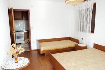 Appartamento può accogliere 7 ospiti. I letti sono disposti nelle camere da letto che sono 3, su 57m2. Gli ospiti hanno a disposizione il proprio terrazzo per godere nelle calde serate estive. Dall'appartamento si gode di una vista sul mare. Si può preparare il cibo utilizzando il barbecue comune. Nell'unità di alloggio si possono portare gli animali domestici con un pagamento supplementare. L'unità d'alloggio ha delle stanze separate dal resto dell'unità.