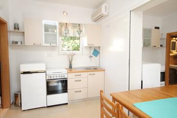 Appartamento può accogliere 4 ospiti. I letti sono disposti nelle camere da letto che sono 2, su 46m2. Gli ospiti hanno a disposizione il proprio terrazzo per godere nelle calde serate estive. Si può preparare il cibo utilizzando il barbecue comune. Arrivati nell'unità d'alloggio i clienti devono pagare un deposito (il prezzo è indicato sul sito).
