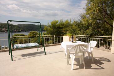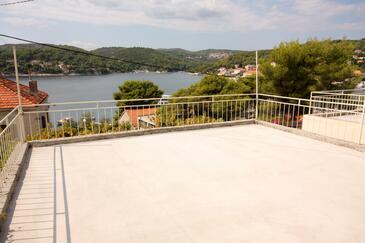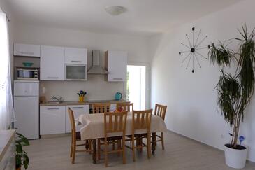 Appartamento può accogliere 6 ospiti. I letti sono disposti nelle camere da letto che sono 3, su 73m2. Gli ospiti hanno a disposizione il proprio terrazzo per godere nelle calde serate estive. Dall'appartamento si gode di una vista sul mare. Si può preparare il cibo utilizzando il barbecue comune.