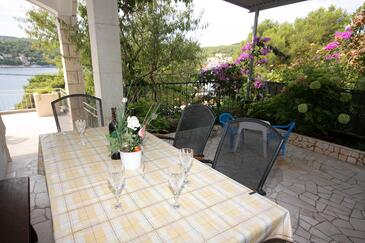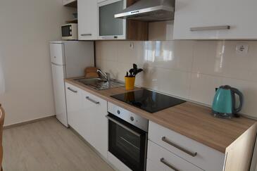 Appartamento può accogliere 6 ospiti. I letti sono disposti nelle camere da letto che sono 3, su 73m2. Gli ospiti hanno a disposizione il proprio terrazzo per godere nelle calde serate estive. Dall'appartamento si gode di una vista sul mare. Si può preparare il cibo utilizzando il barbecue comune.