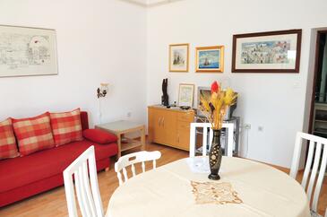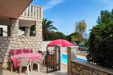 Appartamento può accogliere 7 ospiti. I letti sono disposti nelle camere da letto che sono 3, su 72m2. Gli ospiti hanno a disposizione il proprio terrazzo per godere nelle calde serate estive. Dall'appartamento si gode di una vista sul mare. Si può preparare il cibo utilizzando il barbecue comune. Durante il soggiorno gli ospiti si possono rilassare nella piscina privata. Nell'unità di alloggio si possono portare gli animali domestici con un pagamento supplementare.