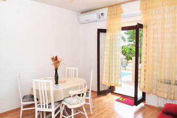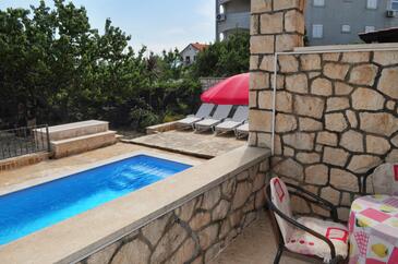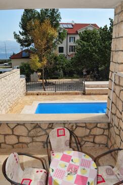 Appartamento può accogliere 7 ospiti. I letti sono disposti nelle camere da letto che sono 3, su 72m2. Gli ospiti hanno a disposizione il proprio terrazzo per godere nelle calde serate estive. Dall'appartamento si gode di una vista sul mare. Si può preparare il cibo utilizzando il barbecue comune. Durante il soggiorno gli ospiti si possono rilassare nella piscina privata. Nell'unità di alloggio si possono portare gli animali domestici con un pagamento supplementare.