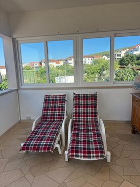 Appartamento può accogliere 6 ospiti. I letti sono disposti nelle camere da letto che sono 3, su 75m2. Gli ospiti hanno a disposizione il proprio terrazzo per godere nelle calde serate estive. Dall'appartamento si gode di una vista sul mare. Si può preparare il cibo utilizzando il barbecue comune.