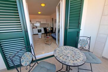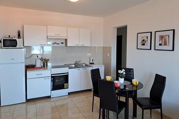 Appartamento può accogliere 5 ospiti. I letti sono disposti nelle camere da letto che sono 2, e nella camera di soggiorno, su 45m2. Gli ospiti hanno a disposizione il proprio balcone per godere delle calde serate estive. Dall'appartamento si gode di una vista sul mare.