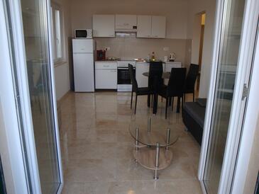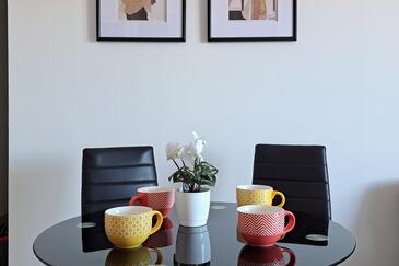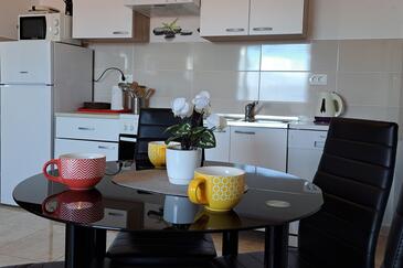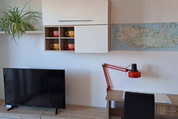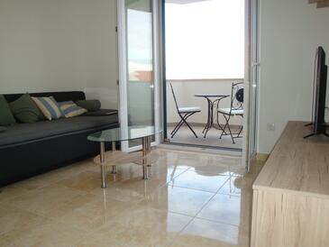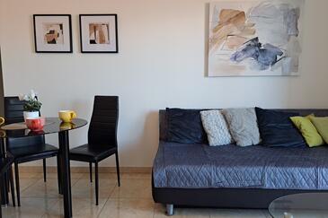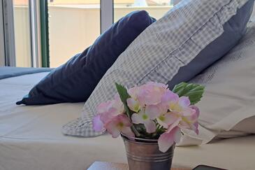 Appartamento può accogliere 5 ospiti. I letti sono disposti nelle camere da letto che sono 2, e nella camera di soggiorno, su 45m2. Gli ospiti hanno a disposizione il proprio balcone per godere delle calde serate estive. Dall'appartamento si gode di una vista sul mare.