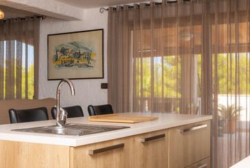 Casa può accogliere 7 ospiti. I letti sono disposti nelle camere da letto che sono 4, su 115m2. Gli ospiti hanno a disposizione il proprio terrazzo per godere nelle calde serate estive. Dalla casa si gode di una vista sul mare. Per il piacere totale e il relax c'è il barbecue privato solo per gli ospiti di quest'alloggio. Durante il soggiorno gli ospiti si possono rilassare nella piscina privata.
