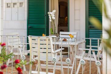 Appartamento può accogliere 8 ospiti. I letti sono disposti nelle camere da letto che sono 3, e nella camera di soggiorno, su 68m2. Gli ospiti hanno a disposizione il proprio terrazzo per godere nelle calde serate estive. Dall'appartamento si gode di una vista sul mare. Per il piacere totale e il relax c'è il barbecue privato solo per gli ospiti di quest'alloggio.