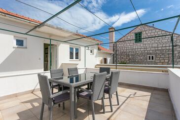 Appartamento può accogliere 4 ospiti. I letti sono disposti nelle camere da letto che sono 2, su 50m2. Gli ospiti hanno a disposizione il proprio terrazzo per godere nelle calde serate estive. Si può preparare il cibo utilizzando il barbecue comune.