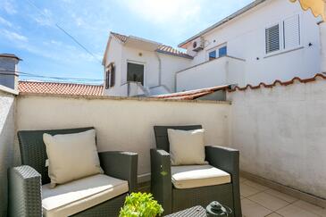 Appartamento può accogliere 4 ospiti. I letti sono disposti nelle camere da letto che sono 2, su 50m2. Gli ospiti hanno a disposizione il proprio terrazzo per godere nelle calde serate estive. Si può preparare il cibo utilizzando il barbecue comune.