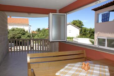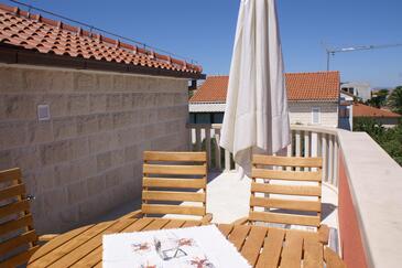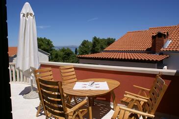 Appartamento può accogliere 5 ospiti. I letti sono disposti nelle camere da letto che sono 2, su 90m2. Gli ospiti hanno a disposizione il proprio terrazzo per godere nelle calde serate estive. Dall'appartamento si gode di una vista sul mare. Si può preparare il cibo utilizzando il barbecue comune.