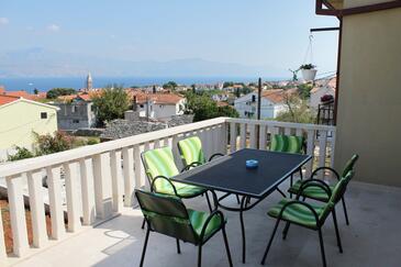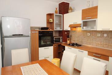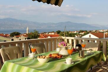 Appartamento può accogliere 6 ospiti. I letti sono disposti nelle camere da letto che sono 3, su 89m2. Gli ospiti hanno a disposizione il proprio terrazzo per godere nelle calde serate estive. Dall'appartamento si gode di una vista sul mare. Si può preparare il cibo utilizzando il barbecue comune.