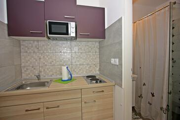 Appartamento può accogliere 6 ospiti. I letti sono disposti nelle camere da letto che sono 3, su 65m2. Gli ospiti hanno a disposizione il proprio terrazzo per godere nelle calde serate estive. Dall'appartamento si gode di una vista sul mare. Si può preparare il cibo utilizzando il barbecue comune.