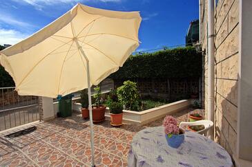 Appartamento può accogliere 6 ospiti. I letti sono disposti nelle camere da letto che sono 3, su 65m2. Gli ospiti hanno a disposizione il proprio terrazzo per godere nelle calde serate estive. Dall'appartamento si gode di una vista sul mare. Si può preparare il cibo utilizzando il barbecue comune.