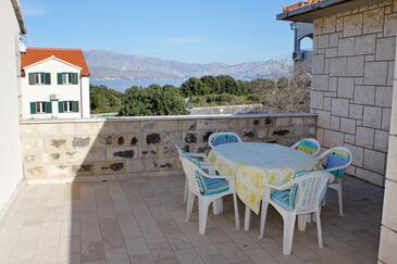 Appartamento può accogliere 8 ospiti. I letti sono disposti nelle camere da letto che sono 4, su 118m2. Gli ospiti hanno a disposizione il proprio terrazzo per godere nelle calde serate estive. Dall'appartamento si gode di una vista sul mare. Si può preparare il cibo utilizzando il barbecue comune.