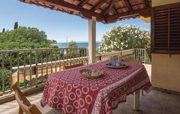 Appartamento può accogliere 5 ospiti. I letti sono disposti nelle camere da letto che sono 2, su 63m2. Gli ospiti hanno a disposizione il proprio terrazzo per godere nelle calde serate estive. Dall'appartamento si gode di una vista sul mare. Si può preparare il cibo utilizzando il barbecue comune.