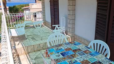 Appartamento può accogliere 4 ospiti. I letti sono disposti nelle camere da letto che sono 2, su 67m2. Gli ospiti hanno a disposizione il proprio terrazzo per godere nelle calde serate estive. Dall'appartamento si gode di una vista sul mare. Si può preparare il cibo utilizzando il barbecue comune.