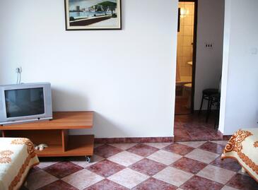 Appartamento può accogliere 4 ospiti. I letti sono disposti nelle camere da letto che sono 2, su 46m2. Gli ospiti hanno a disposizione il proprio terrazzo per godere nelle calde serate estive. Dall'appartamento si gode di una vista sul mare. Per il piacere totale e il relax c'è il barbecue privato solo per gli ospiti di quest'alloggio. L'unità d'alloggio ha delle stanze separate dal resto dell'unità.