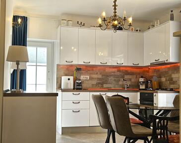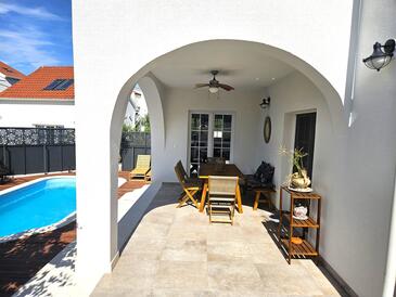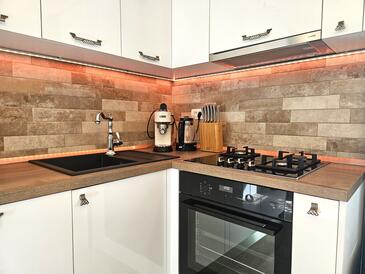 Appartamento può accogliere 6 ospiti. I letti sono disposti nelle camere da letto che sono 3, su 100m2. Gli ospiti hanno a disposizione il proprio terrazzo per godere nelle calde serate estive. Per il piacere totale e il relax c'è il barbecue privato solo per gli ospiti di quest'alloggio. Durante il soggiorno gli ospiti si possono rilassare nella piscina privata. Arrivati nell'unità d'alloggio i clienti devono pagare un deposito (il prezzo è indicato sul sito).