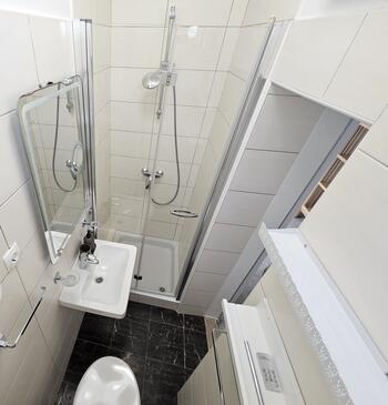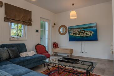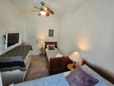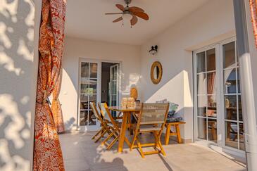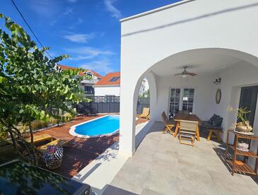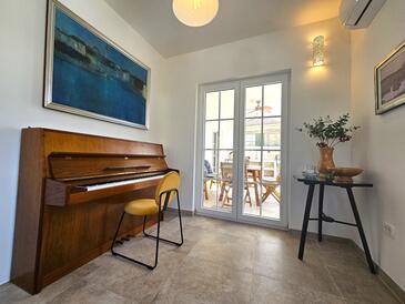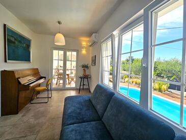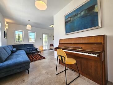 Appartamento può accogliere 6 ospiti. I letti sono disposti nelle camere da letto che sono 3, su 100m2. Gli ospiti hanno a disposizione il proprio terrazzo per godere nelle calde serate estive. Per il piacere totale e il relax c'è il barbecue privato solo per gli ospiti di quest'alloggio. Durante il soggiorno gli ospiti si possono rilassare nella piscina privata. Arrivati nell'unità d'alloggio i clienti devono pagare un deposito (il prezzo è indicato sul sito).