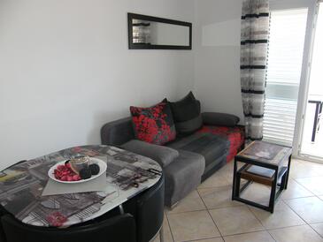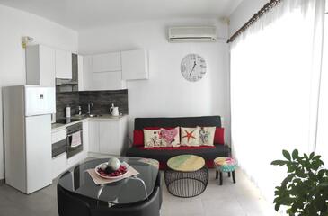 Appartamento può accogliere 5 ospiti. I letti sono disposti nelle camere da letto che sono 2, su 45m2. Gli ospiti hanno a disposizione il proprio terrazzo per godere nelle calde serate estive. Dall'appartamento si gode di una vista sul mare. Si può preparare il cibo utilizzando il barbecue comune. Durante il soggiorno gli ospiti possono utilizzare la piscina comune. Nell'unità di alloggio si possono portare gli animali domestici con un pagamento supplementare.