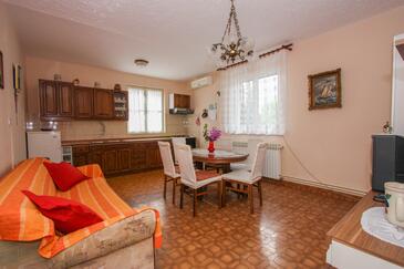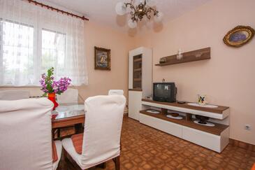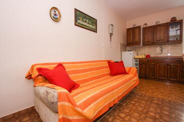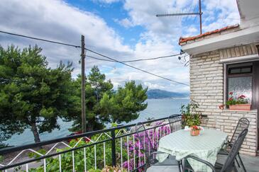 Appartamento può accogliere 5 ospiti. I letti sono disposti nelle camere da letto che sono 2, su 58m2. Gli ospiti hanno a disposizione il proprio terrazzo per godere nelle calde serate estive. Dall'appartamento si gode di una vista sul mare. Si può preparare il cibo utilizzando il barbecue comune.