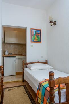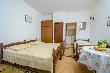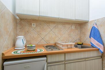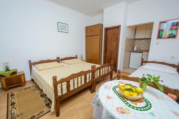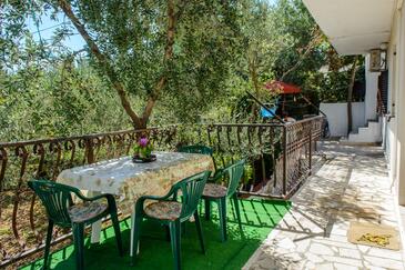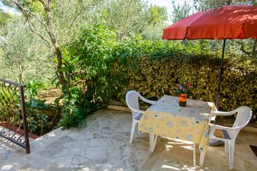 Appartamento può accogliere 5 ospiti. I letti sono disposti nelle camere da letto che sono 2, su 47m2. Gli ospiti hanno a disposizione il proprio terrazzo per godere nelle calde serate estive. Dall'appartamento si gode di una vista sul mare. Si può preparare il cibo utilizzando il barbecue comune.