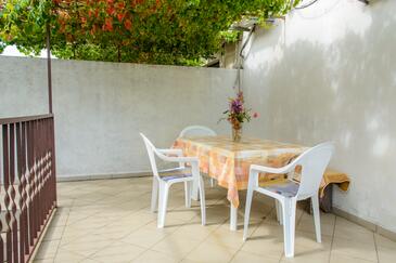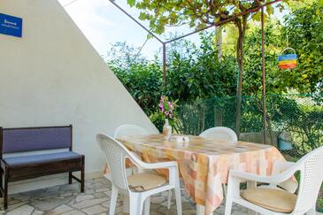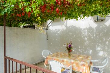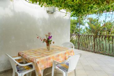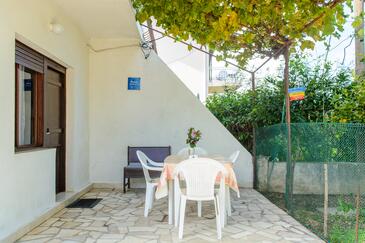 Appartamento può accogliere 5 ospiti. I letti sono disposti nelle camere da letto che sono 2, su 47m2. Gli ospiti hanno a disposizione il proprio terrazzo per godere nelle calde serate estive. Dall'appartamento si gode di una vista sul mare. Si può preparare il cibo utilizzando il barbecue comune.