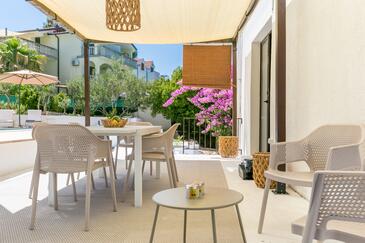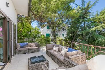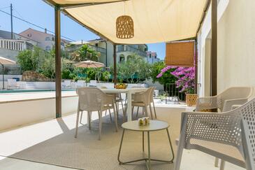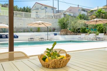 Casa può accogliere 8 ospiti. I letti sono disposti nelle camere da letto che sono 3, su 135m2. Gli ospiti hanno a disposizione il proprio terrazzo per godere nelle calde serate estive. Dalla casa si gode di una vista sul mare. Per il piacere totale e il relax c'è il barbecue privato solo per gli ospiti di quest'alloggio. Durante il soggiorno gli ospiti si possono rilassare nella piscina privata. Le stanze dell'unità d'alloggio non sono connesse in un insieme.