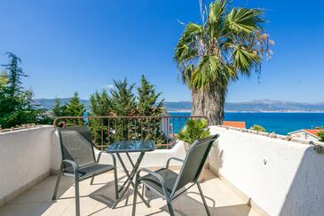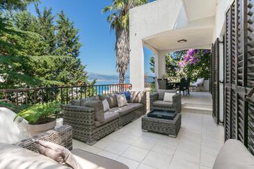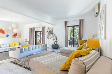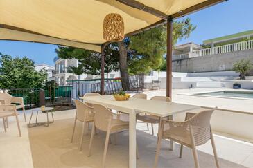 Casa può accogliere 8 ospiti. I letti sono disposti nelle camere da letto che sono 3, su 135m2. Gli ospiti hanno a disposizione il proprio terrazzo per godere nelle calde serate estive. Dalla casa si gode di una vista sul mare. Per il piacere totale e il relax c'è il barbecue privato solo per gli ospiti di quest'alloggio. Durante il soggiorno gli ospiti si possono rilassare nella piscina privata. Le stanze dell'unità d'alloggio non sono connesse in un insieme.