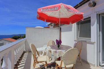 Appartamento può accogliere 4 ospiti. I letti sono disposti nelle camere da letto che sono 2, su 35m2. Gli ospiti hanno a disposizione il proprio terrazzo per godere nelle calde serate estive. Dall'appartamento si gode di una vista sul mare. Si può preparare il cibo utilizzando il barbecue comune. Durante il soggiorno gli ospiti possono utilizzare la piscina comune. Nell'unità di alloggio si possono portare gli animali domestici con un pagamento supplementare.
