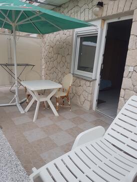 Appartamento può accogliere 4 ospiti. I letti sono disposti nelle camere da letto che sono 2, su 35m2. Gli ospiti hanno a disposizione il proprio terrazzo per godere nelle calde serate estive. Dall'appartamento si gode di una vista sul mare. Si può preparare il cibo utilizzando il barbecue comune. Durante il soggiorno gli ospiti possono utilizzare la piscina comune. Nell'unità di alloggio si possono portare gli animali domestici con un pagamento supplementare.